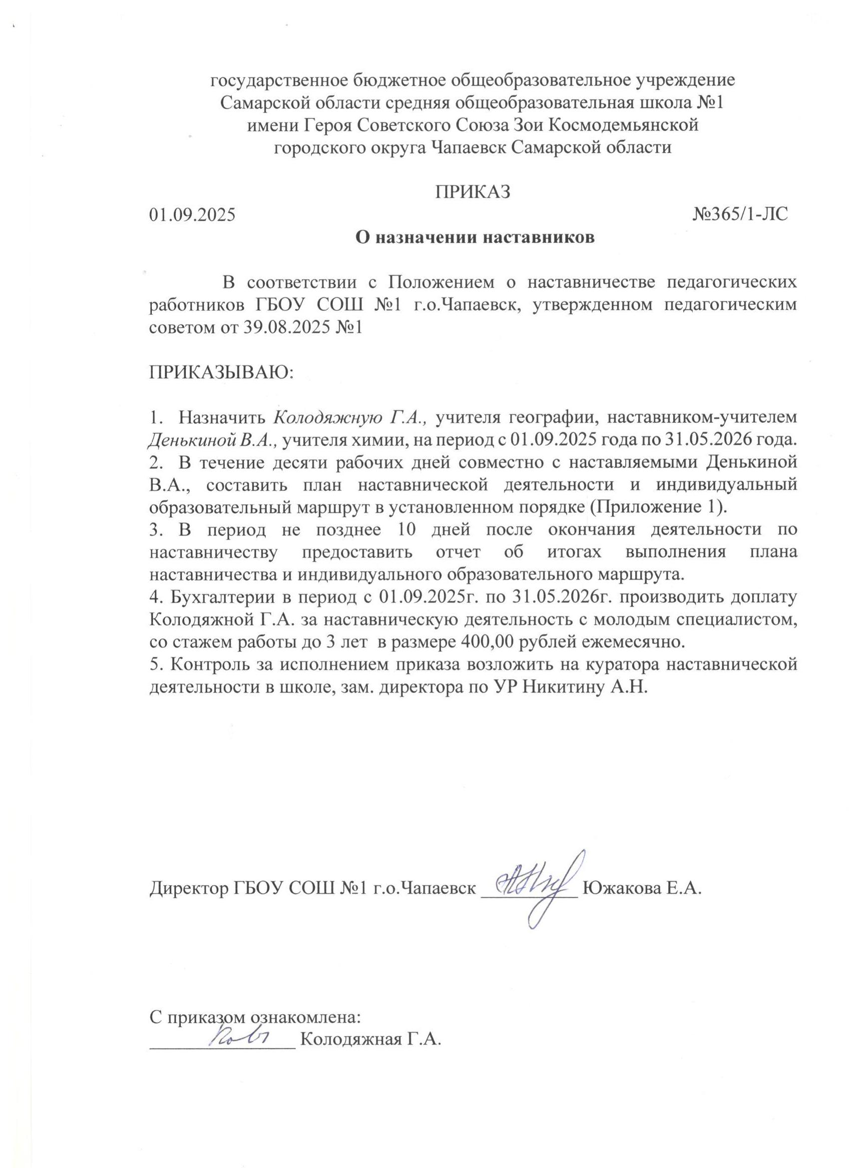 - ПРИКАЗ от 31.08.2021 №222/4-ОД «О внедрении региональной программы многофункционального наставничества педагогических работников в ГБОУ СОШ №1 г.о.Чапаевск»